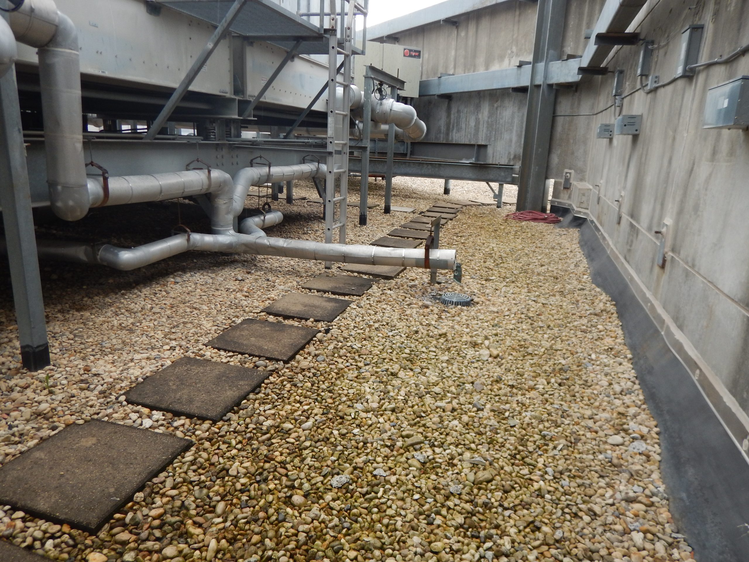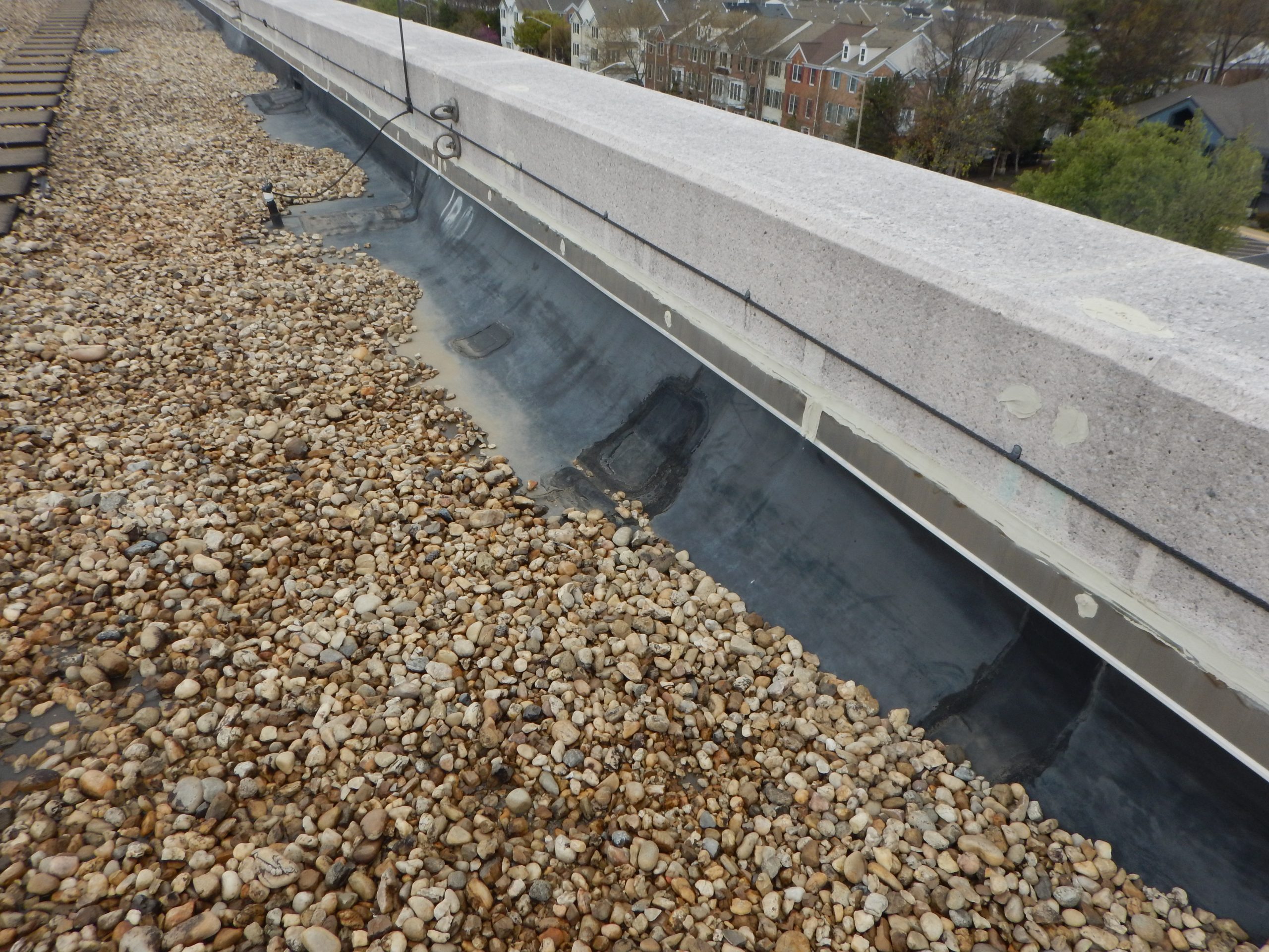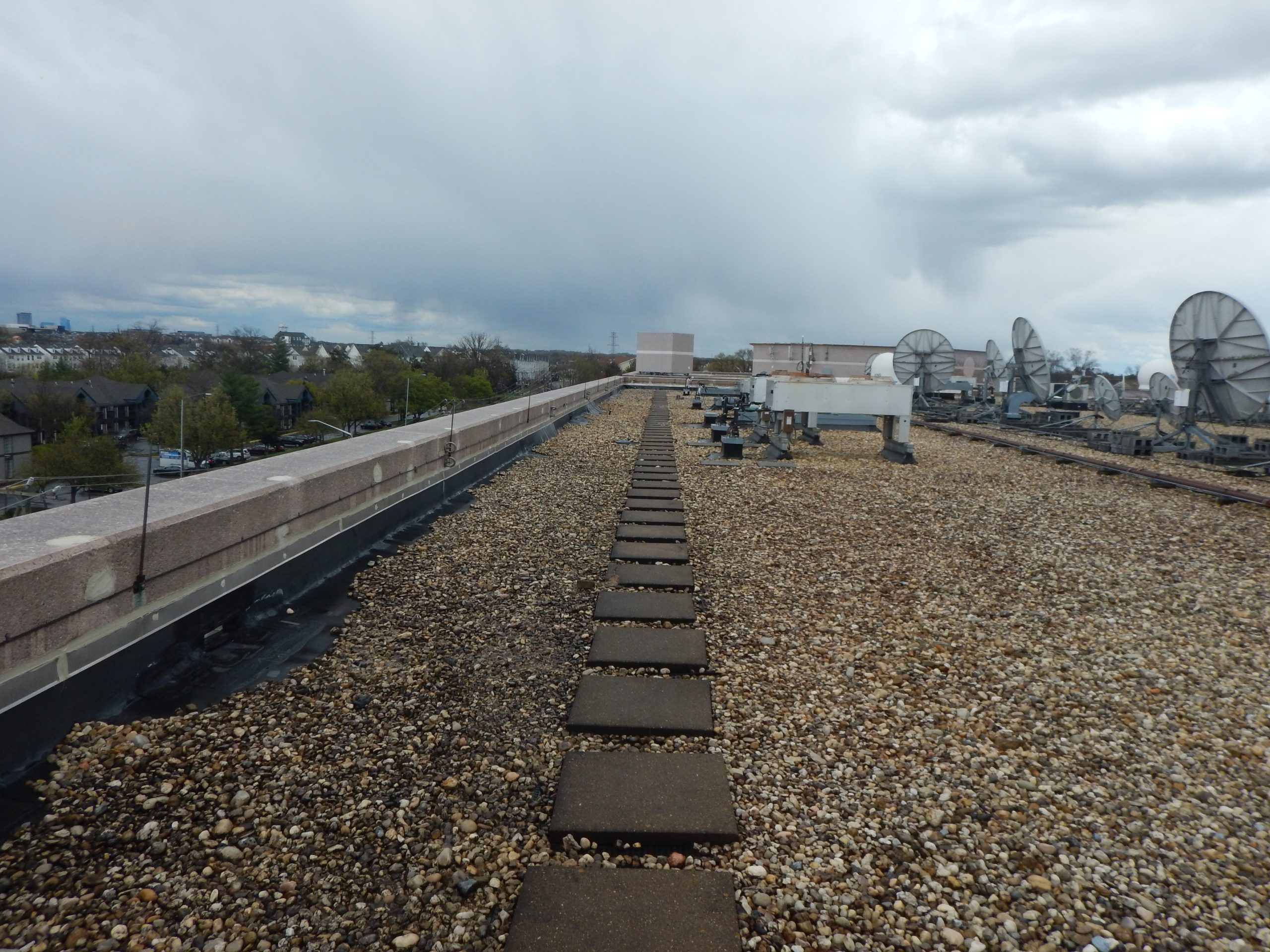 This 26-year-old, four-story, Class A office building represents Phase II of a three-phase roofing improvement program, following the successful recovery of its sister building the previous year. The existing ballasted EPDM roof system, installed during original construction, had exceeded its anticipated service life and was contributing to multiple active leak conditions affecting the top-floor office spaces.